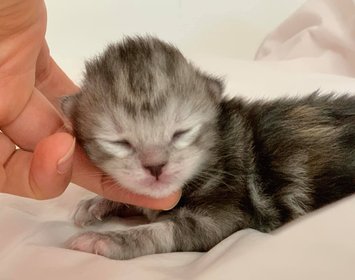 Eevee var enda levande kattungen i E-kullen och hon förlöstes med kejsarsnitt. Trots att hon är ensam i kullen och saknar jämnåriga förebilder har hon utvecklats lika fint som andra kattungar.